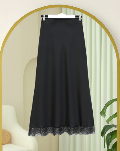 Ucu Dantel Detaylı Saten Etek Siyah