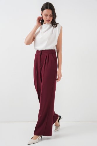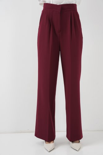 • Yüksek Bel Bol Kumaş Pantolon 6697 Bordo