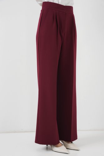 Yüksek Bel Bol Kumaş Pantolon 6697 Bordo