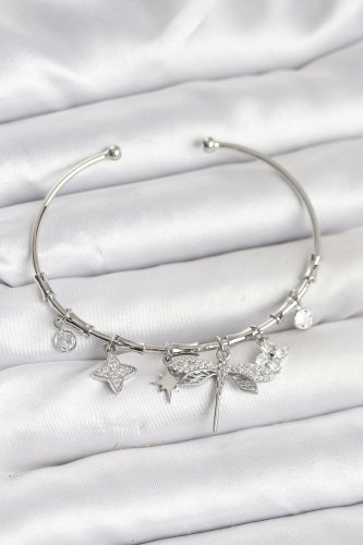 • Yusufçuk Charmlı Gümüş Renk Pirinç Kadın Bileklik