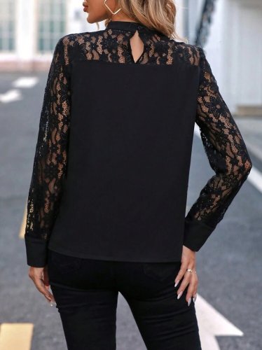 • Kadın uzun kollu yarı balıkçı yaka dantelli sandy bluz