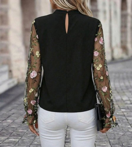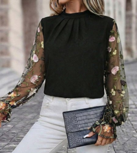 • Kadın uzun kollu yarı balıkçı yaka tül detaylı ithal krep bluz