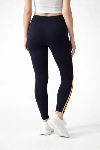 • Likralı Yan Sarı Şeritli Detaylı Tayt Siyah