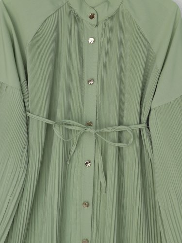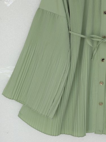 • Gold Düğmeli Önü Ve Kolları Pliseli Bağcıklı Gömlek AYeşil