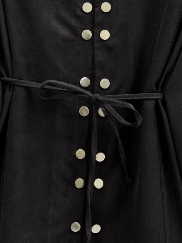 Çift Çıtçıt Detaylı Yuvarlak Yaka Bol Paça Pantolonlu Modal Takım Siyah