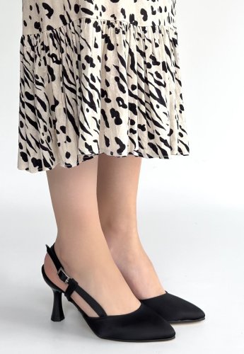 • Joga Siyah Cilt Simli Topuklu Ayakkabı