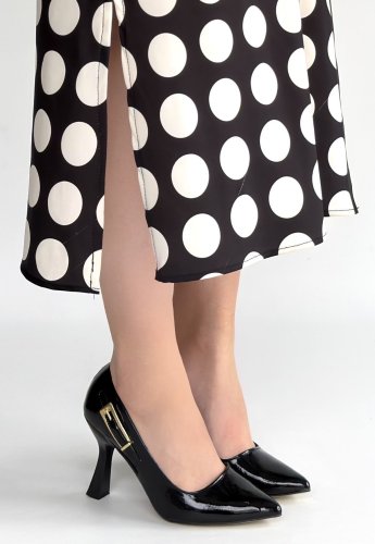 Cerin Siyah Rugan Topuklu Ayakkabı