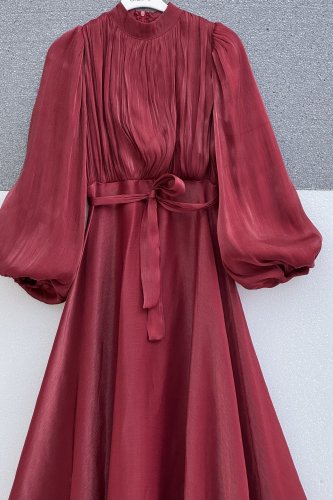 • Eteği Volanlı Kemerli Janjan Şifon Elbise Bordo