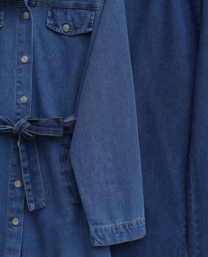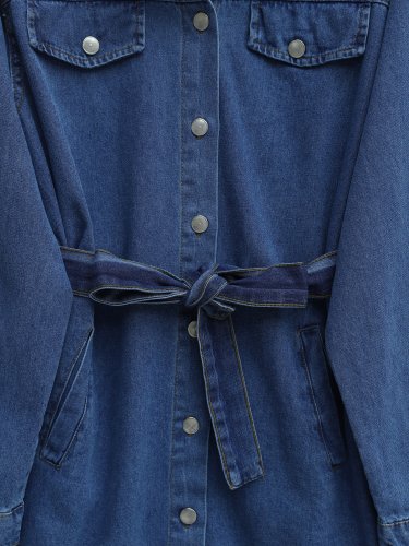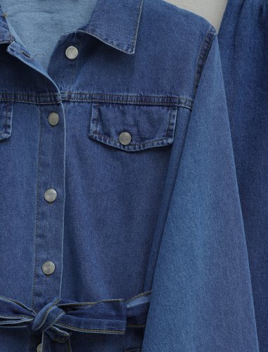 • Düğmeli Beli Kemerli Cepli Kot İkili Takım Mavi